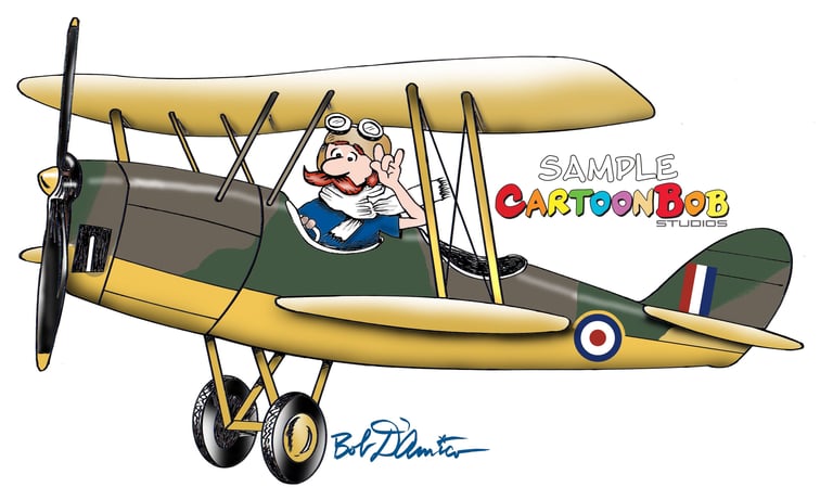 CartoonBob utilizes AI for general visual references that were previously provided by stock photos. ( For example, what does a Sopwith Camel two-wing airplane look like?)
